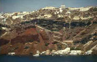 Ortschaften und Sehenswuerdigkeiten auf der Insel Santorini OiaDer älteste, ursprünglichste und malerische Ort der Insel, ist Oia. Die Ortschaft liegt an der Nordspitze, des Kraterrandes und ist ca. 11 km von Thira entfernt. Einst beherbergte der Ort fast ausschließlich Seefahrer und Ihre Familien. Viele der kleinen Häuschen sind in den weichen Fels hineingegraben, die einen weißgetüncht, die anderen blau oder ockerfarben gestrichen, daneben klassizistische Bürgerhäuser mit idyllischen Innenhöfen. Viele der Häuser sind nach 1956 erbaut worden. Denn in diesem Jahr machte ein gewaltiges Erdbeben aus dem kleinen Ort einen Trümmerhaufen und zerstörte viele der Gebäude. Heute erstrahlen die weißen Häuser und die blauen Kuppeln der Kirchen in neuem Glanz. Vor der Kulisse der schwarzen Felsen mit ihren unzähligen Höhlen, ein Bild wie eine Postkarte. Von Oia aus hat man einen überwältigend Blick weit auf das azurblaue Meer. Den kitschig-romantischen Sonnenuntergang von hier aus angeschaut, ist ein Erlebnis, das sie sicher nie wieder vergessen werden